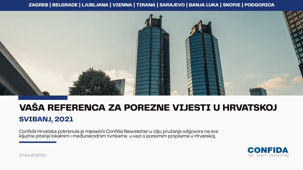 Confida Hrvatska pokrenula je mjesečni Confida Newsletter u cilju pružanja odgovora na sva ključna pitanja lokalnim i međunarodnim tvrtkama u vezi s poreznim propisima u Hrvatskoj. U svibanjskom pregledu našeg Newslettera donosimo vam presjek svih važnih i aktualnih poreznih novosti u Hrvatskoj.